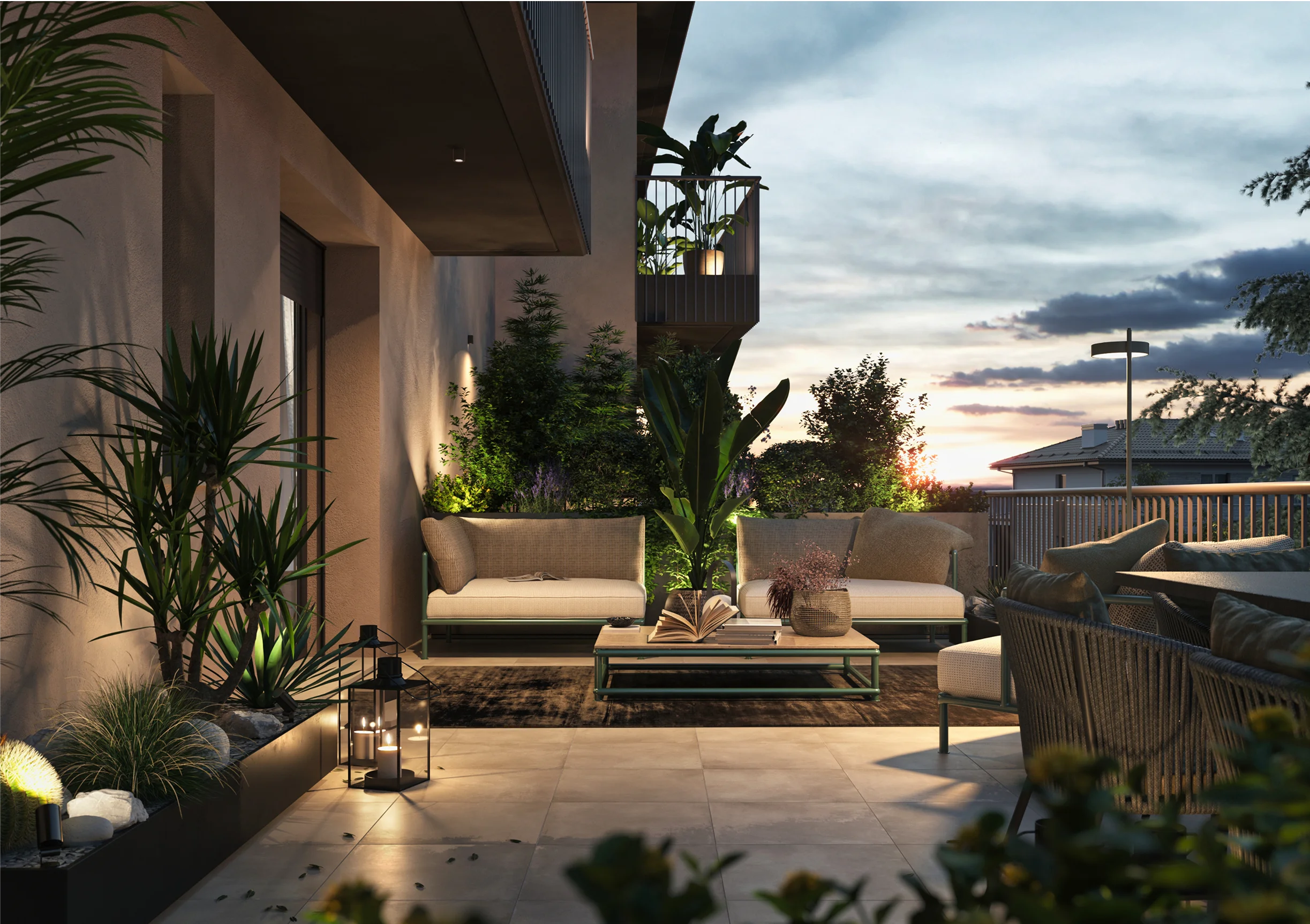 Living, terrazze e spazi comuni prendono vita in immagini virtuali emozionali, capaci di raccontare l’esperienza abitativa e creare connessione con il progetto.