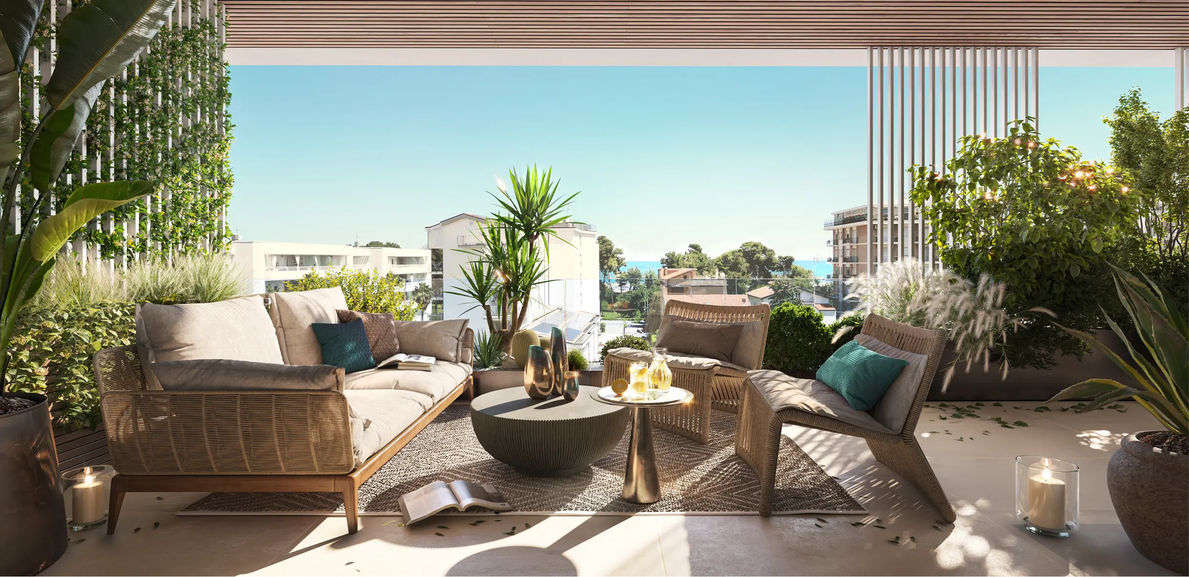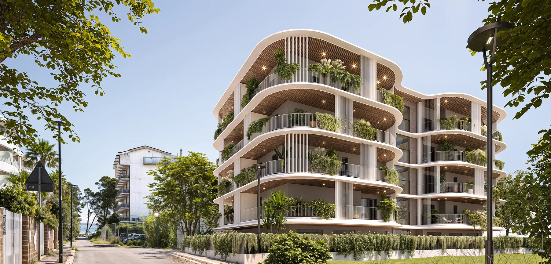 The name recalls its Greek origins, evoking the sea and the transformative power of ships, representing a project immersed between sea and mountains. From this inspiration comes a color palette of marine and natural tones, conveying harmony and elegance, perfectly in tune with the condominium’s exclusive design.