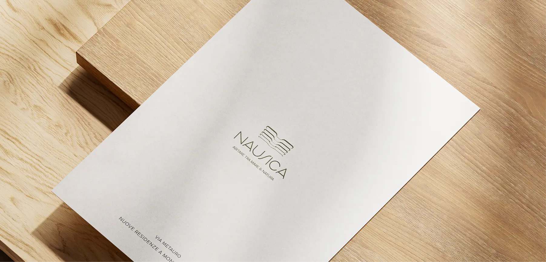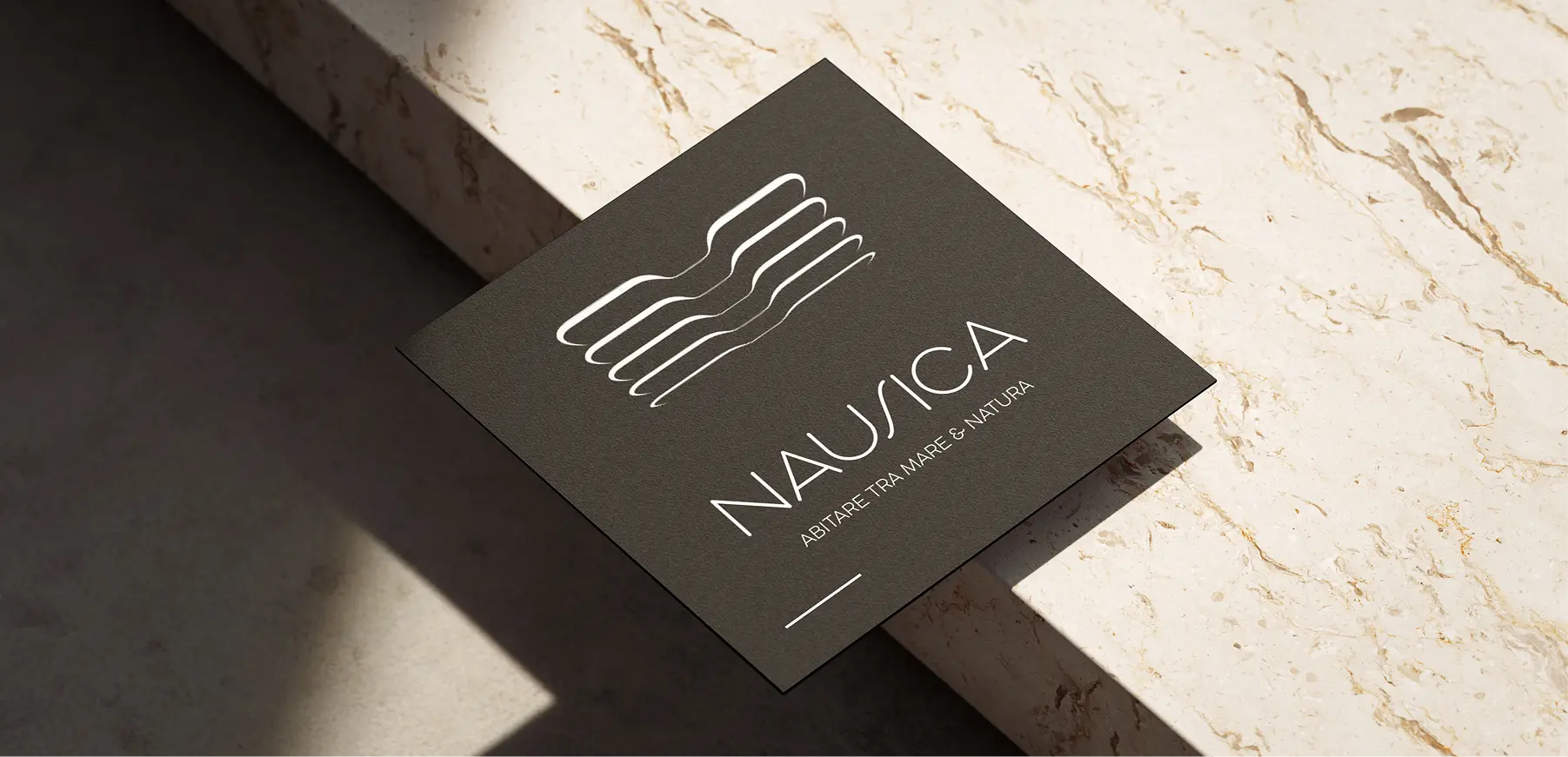 The clear, minimal logo distills the essence of the project, recalling its unique connection with the environment. These elements gave life to a suite of distinctive communication materials: from graphic design to promotional assets and the digital platform, every detail was conceived to strengthen Nausica’s identity and create a memorable connection with its audience.