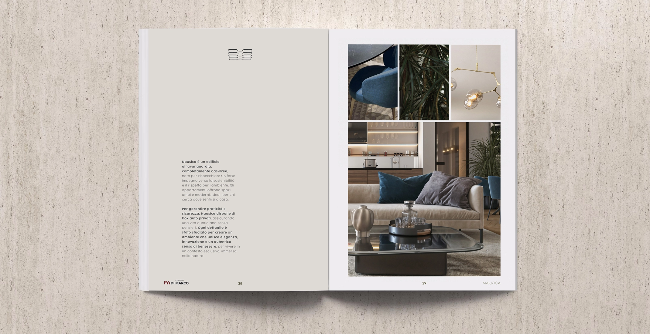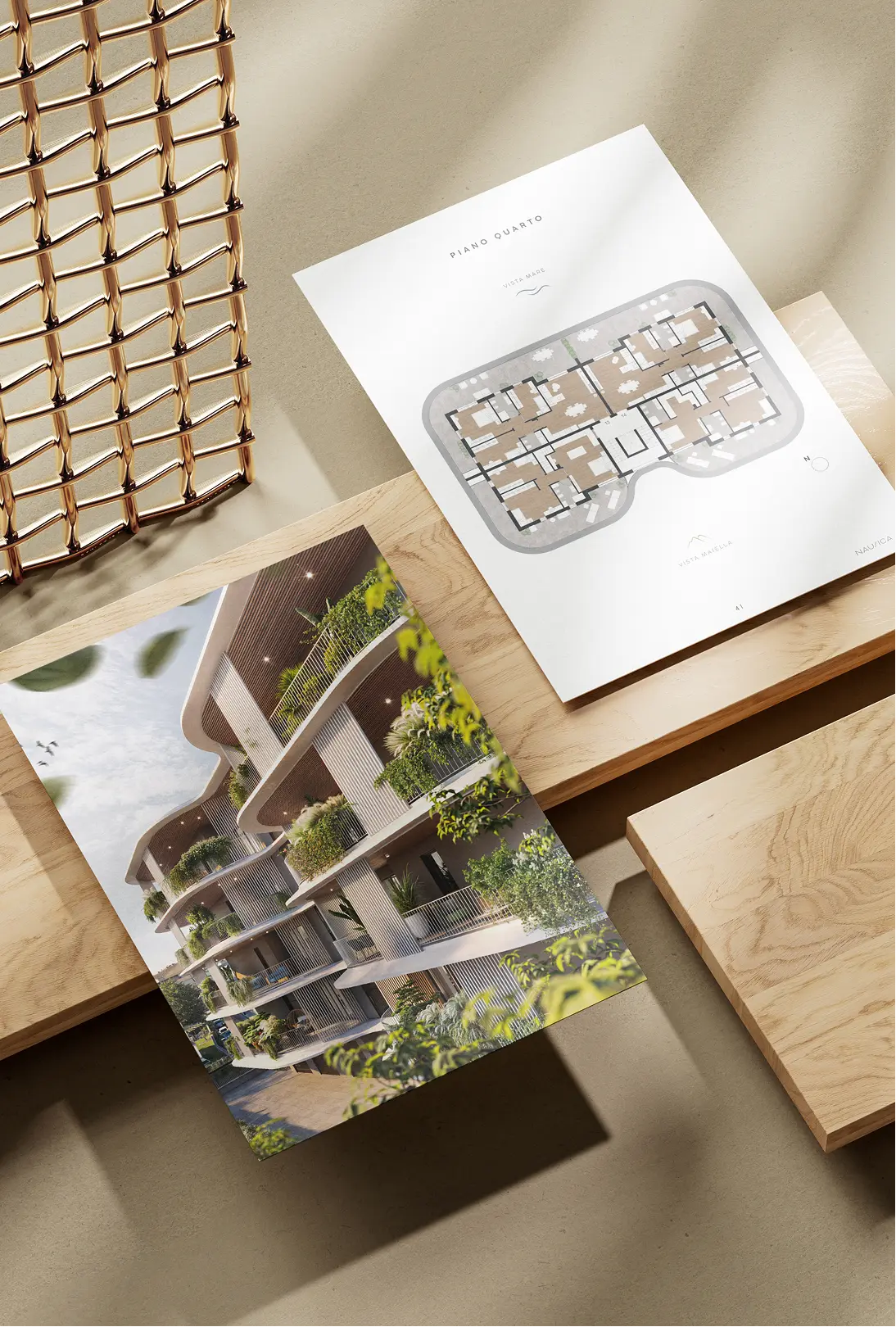 Completing the experience, magazines and brochures printed on premium-quality materials narrate the project with elegance and detail. These materials, offered to clients during negotiations, create a tangible and memorable impression, blending tradition and innovation.