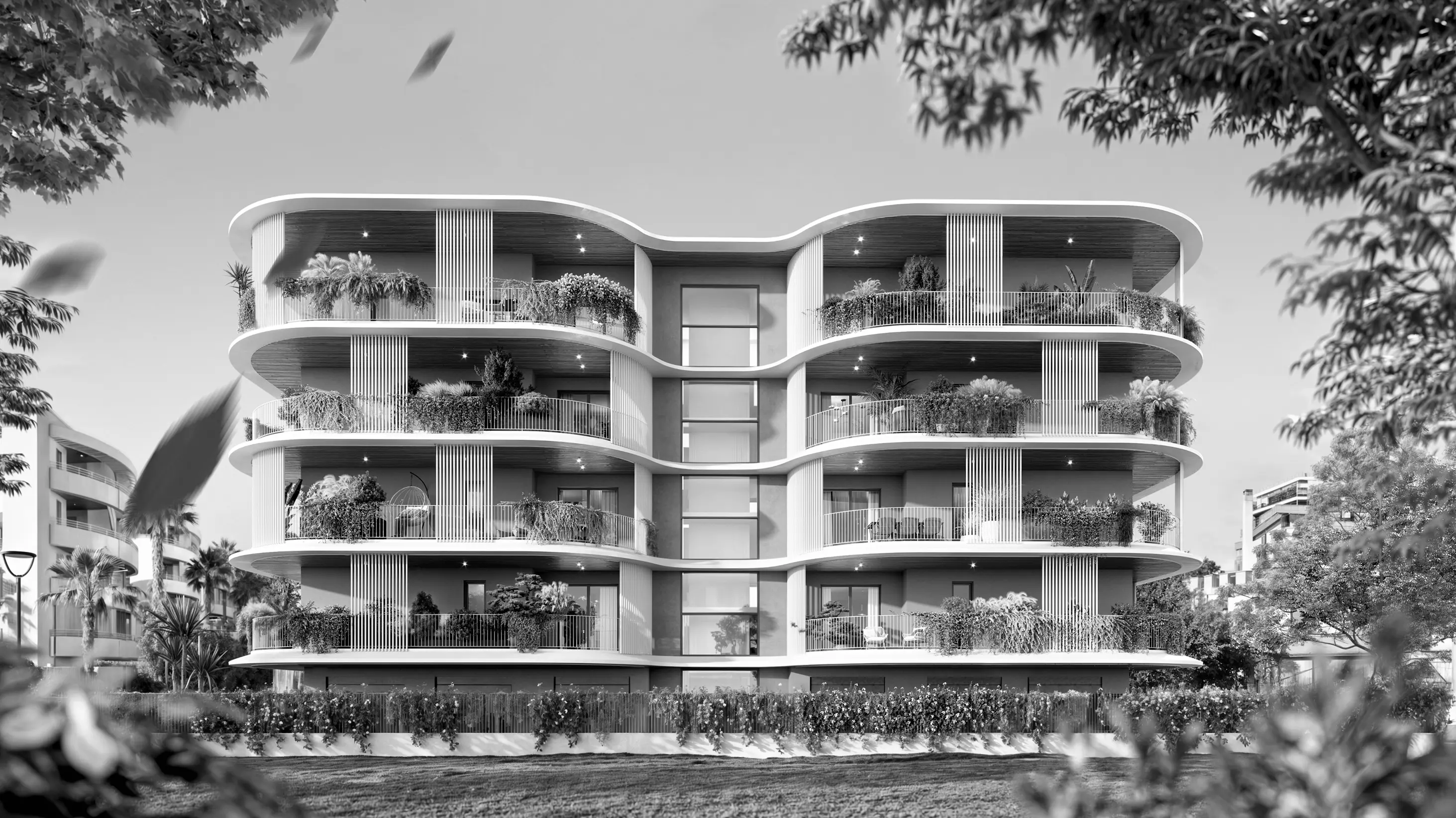 We handled the architectural design of the façades, using elegant forms and quality materials to position the project in the upper mid-range of the market, combining aesthetics and functionality.