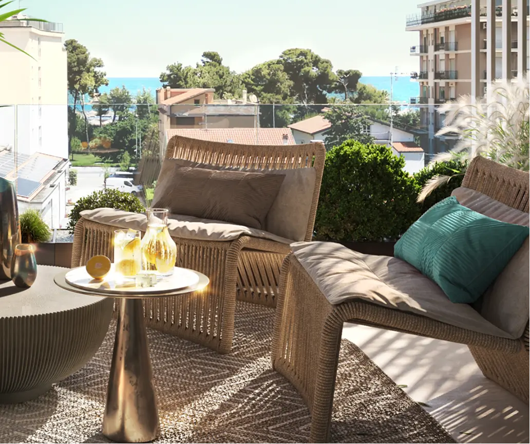 In this real estate development, we sought the essence of living in a unique setting, just a stone’s throw from the sea. Every window offers a view that fades into blue toward the horizon, while on the opposite side the majesty of the Gran Sasso dominates. +